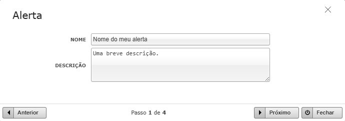 2. Configure o nome e uma breve descrição do alerta