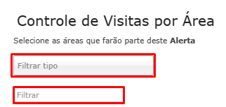 - É possível filtrar as áreas de controle por Tipo ou pelo Nome.