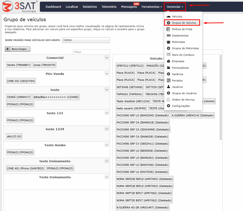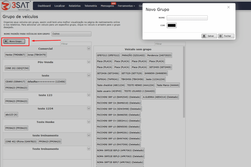 Em grupo de veículos é possível separar os veículos em grupos com nomes para facilitar a identificação e a utilização de diversas ferramentas.