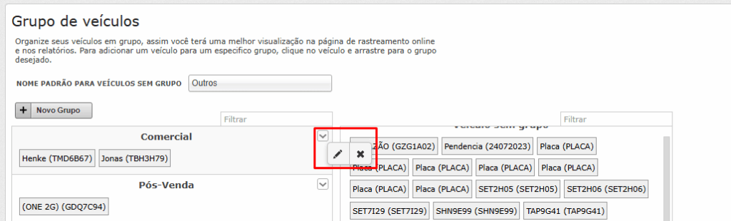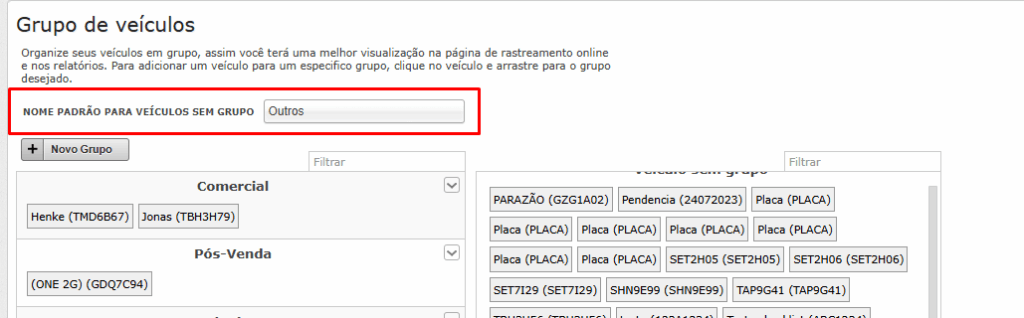 Também é possível selecionar o nome padrão para veículos sem grupo.