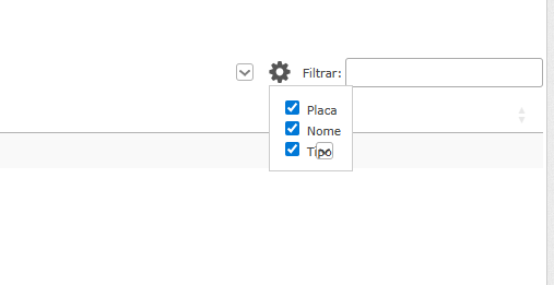 Digitando na barra, você visualizará somente os veículos que contenham as informações digitadas